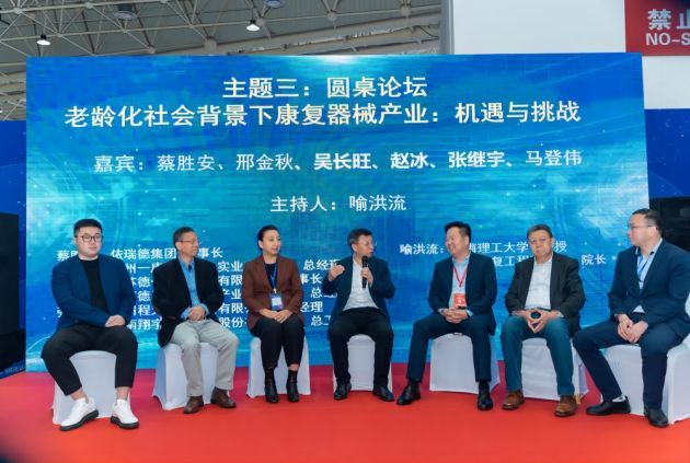 主題三“老齡化社會(huì)背景下康復(fù)器械產(chǎn)業(yè):機(jī)遇與挑戰(zhàn)”圓桌論壇由上海理工大學(xué)智能康復(fù)工程研究院院長(zhǎng)喻洪流教授主持。依瑞德集團(tuán)董事長(zhǎng)蔡勝安、山西德奧康復(fù)技術(shù)產(chǎn)業(yè)有限公司總經(jīng)理趙冰等六位企業(yè)家代表對(duì)中國(guó)養(yǎng)老事業(yè)中康復(fù)器械產(chǎn)業(yè)的發(fā)展進(jìn)行了熱烈討論,并分別從“社區(qū)到家庭”、“高端康復(fù)器械”、“低端康復(fù)器械”三個(gè)方面深入探討了康復(fù)器械產(chǎn)業(yè)在養(yǎng)老事業(yè)中的重要性,為中國(guó)康復(fù)器械產(chǎn)業(yè)的發(fā)展指明了方向。