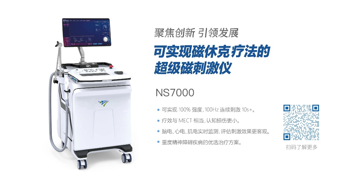 根據(jù)中國疾病預防控制中心精神衛(wèi)生中心統(tǒng)計,中國神經(jīng)精神疾病負擔已排名首位,各類精神疾病患者人數(shù)超過1億,其中重癥精神障礙患者人數(shù)超過1600萬,精神疾病導致自殺人數(shù)占總自殺數(shù)三分之一,對社會和家庭造成巨大創(chuàng)傷和損失。NS7000超級磁刺激儀以高頻高強脈沖磁場“重啟”患者大腦,具備物理療法的無痛無創(chuàng)無損特點,是重度精神障礙疾病的優(yōu)選治療方案。目前已在上海市精神衛(wèi)生中心、天津市安定醫(yī)院、湖北省人民醫(yī)院、山東省精神衛(wèi)生中心、山西醫(yī)科大學第一醫(yī)院等醫(yī)院投入應用。