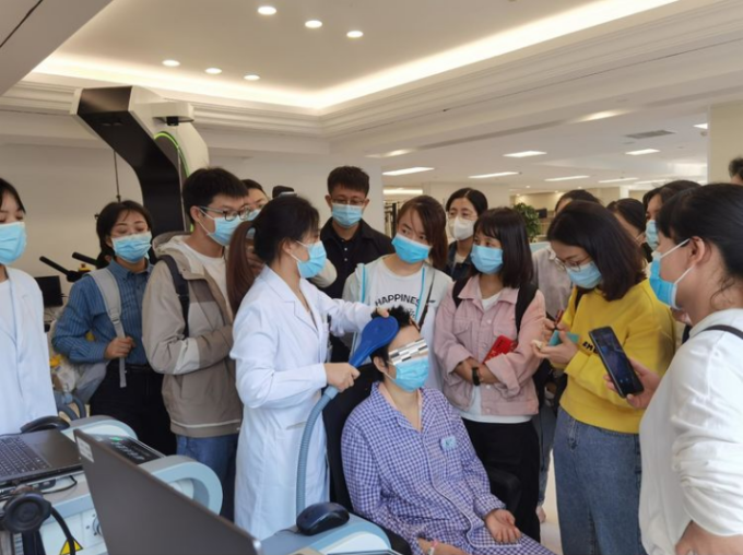 空軍軍醫(yī)大學(xué)第一附屬醫(yī)院康復(fù)醫(yī)學(xué)科薛白潔老師帶來經(jīng)顱磁刺激操作演示(依瑞德CCY-I磁場(chǎng)刺激儀)