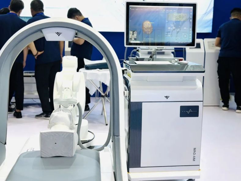 Mag-aim由依瑞德集團(tuán)自主研制,運(yùn)用全球首創(chuàng)視覺(jué)識(shí)別定位算法,融合醫(yī)學(xué)影像處理、定位導(dǎo)航、智能操控、自動(dòng)檢測(cè)閾值(aMEP)等前沿技術(shù),高度協(xié)同,引領(lǐng)TMS技術(shù)進(jìn)入精準(zhǔn)、智能、高效的2.0時(shí)代。Mag-aim阿米配備SNT療法(斯坦福療法)專項(xiàng)模塊設(shè)計(jì),可將抑郁癥治療有效率提高到90%以上,成為展臺(tái)的明星,咨詢者絡(luò)繹不絕。