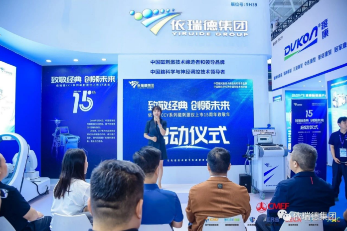 自此,拉開(kāi)了TMS設(shè)備國(guó)產(chǎn)超越和替代的時(shí)代大幕,這項(xiàng)無(wú)創(chuàng)性神經(jīng)調(diào)控技術(shù)也逐漸從科研和少量臨床應(yīng)用逐漸走向普及。10月29日上午,“致敬經(jīng)典 創(chuàng)領(lǐng)未來(lái)——依瑞德CCY系列磁刺激儀上市15周年致敬年啟動(dòng)儀式”在CMEF九號(hào)館依瑞德展區(qū)舉行。