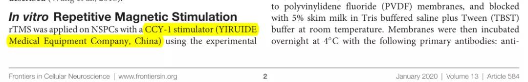 文中黃色底紋標(biāo)注使用了依瑞德生產(chǎn)的磁場刺激儀,并配備定制化的動物線圈