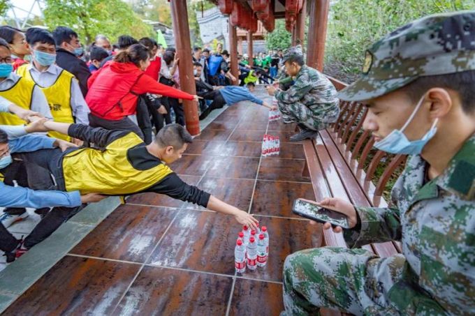 趣味活動共三輪,在每個趣味活動中,各個戰(zhàn)隊成員同心協(xié)作、團結共進,在刺激與歡樂的過程中,體驗著完成挑戰(zhàn)的價值提升感和榮譽自豪感。