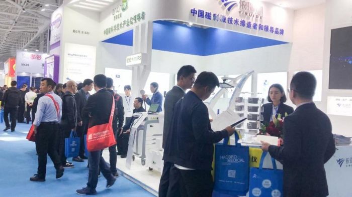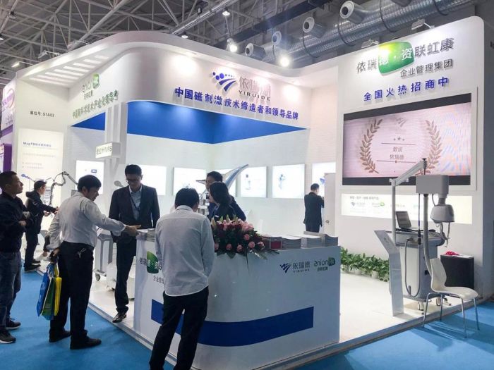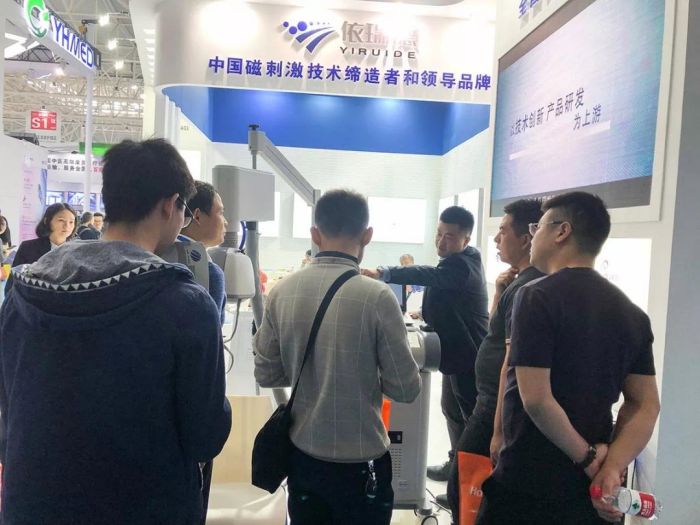 在S1館A03依瑞德展臺(tái)上,全國首創(chuàng)的雙位聯(lián)動(dòng)磁場(chǎng)刺激儀“MagTD”全新升級(jí)亮相。