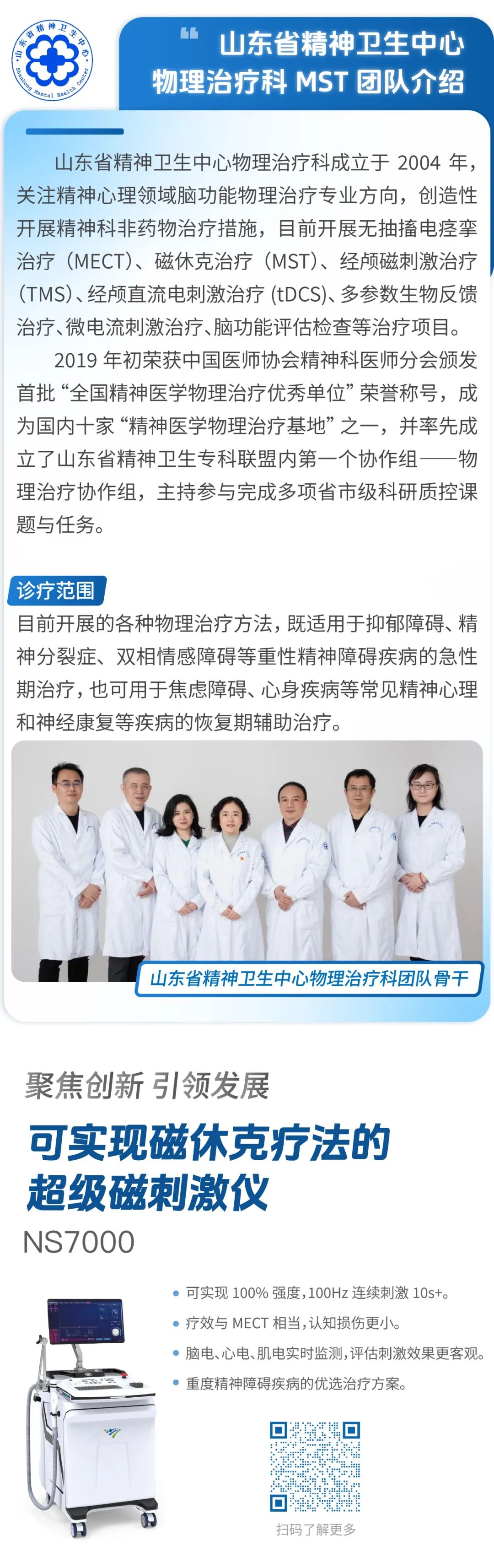山東省精神衛(wèi)生中心自2022年引入磁休克治療后,臨床使用療效確切,受到臨床患者和家屬的一致好評。