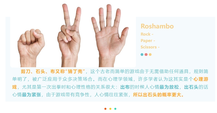 近年來有學者將剪刀、石頭、布作為一種新的任務范式來對精神疾病進行診斷研究 →