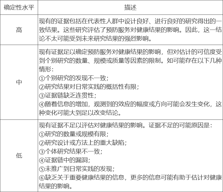 附表4,美國(guó)疾病控制和預(yù)防中心(CDC)的證據(jù)等級(jí):