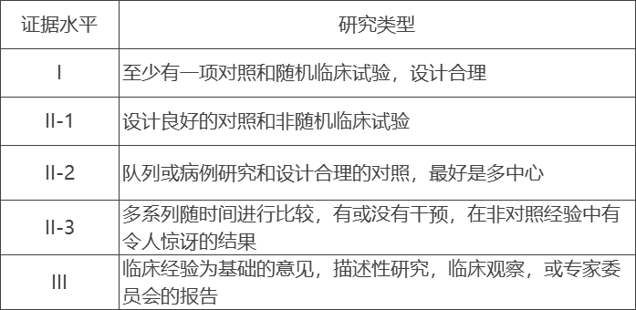 附表1,研究類(lèi)型和證據(jù)水平:
