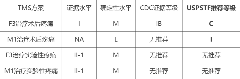 TMS治療急性疼痛的研究有高頻(5Hz或10Hz)也有低頻(1Hz),刺激部位有左前額葉背外側(cè)區(qū)(F3),也有原始運(yùn)動(dòng)皮質(zhì)(M1區(qū)),多個(gè)研究結(jié)論不一致。