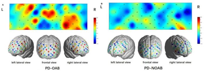 2023年,來自上海交通大學(xué)醫(yī)學(xué)院附屬新華醫(yī)院神經(jīng)內(nèi)科侯媌媌團隊在《Frontiers in neuroscience》雜志上發(fā)表了一項利用近紅外腦功能成像技術(shù)(functional near infrared spectroscopy,fNIRS)比較PD伴OAB和不伴OAB患者的前額葉皮層激活差異和腦網(wǎng)絡(luò)連接差異的研究。
