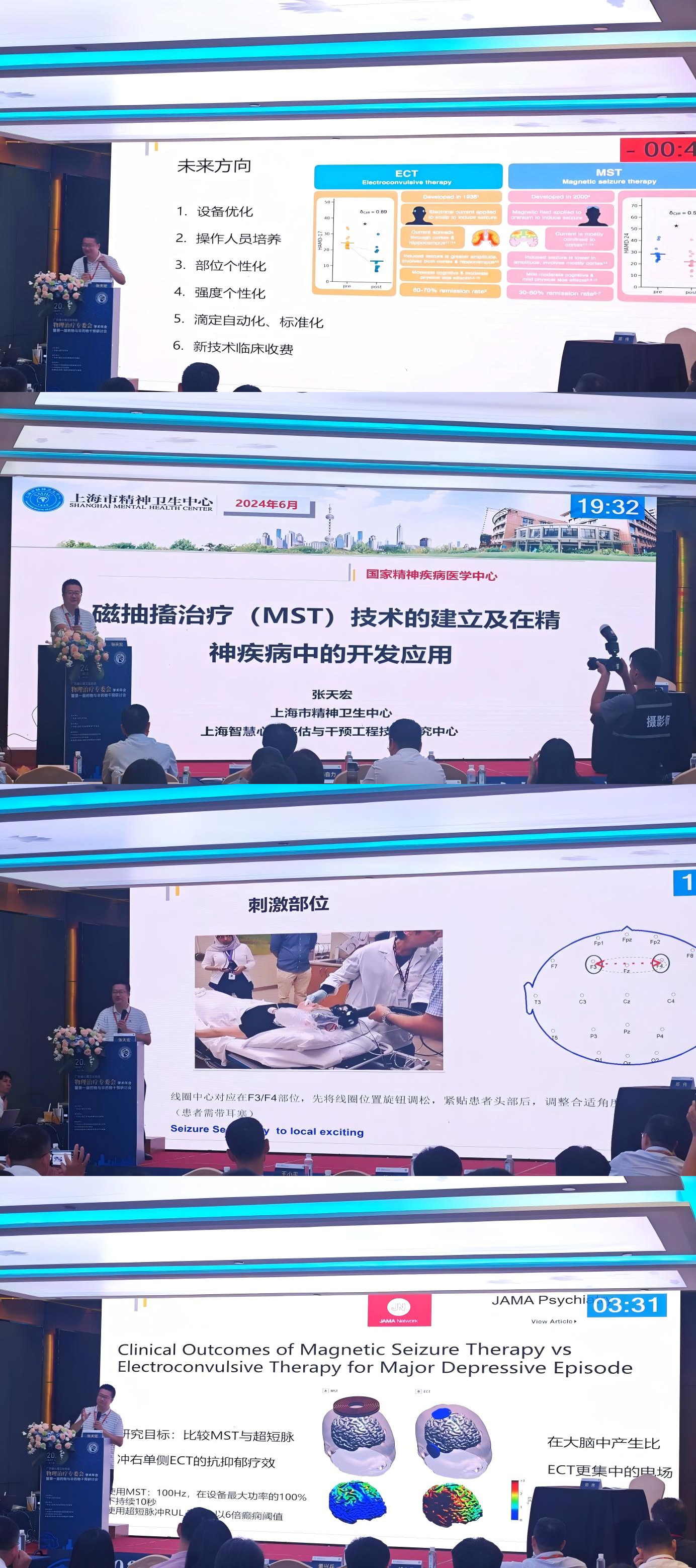 本次會議“磁休克技術(shù)”持續(xù)引熱議,廣州醫(yī)科大學附屬腦科醫(yī)院黃雄教授、鄭偉教授、深圳康寧醫(yī)院曾玲蕓教授、上海精神衛(wèi)生中心張?zhí)旌杲淌?、中南大學湘雅二醫(yī)院王小平教授等專家提到MST技術(shù)。其中,張?zhí)旌杲淌谡J為“現(xiàn)有研究表明,MST與ECT療效類似,認知副作用更小”。