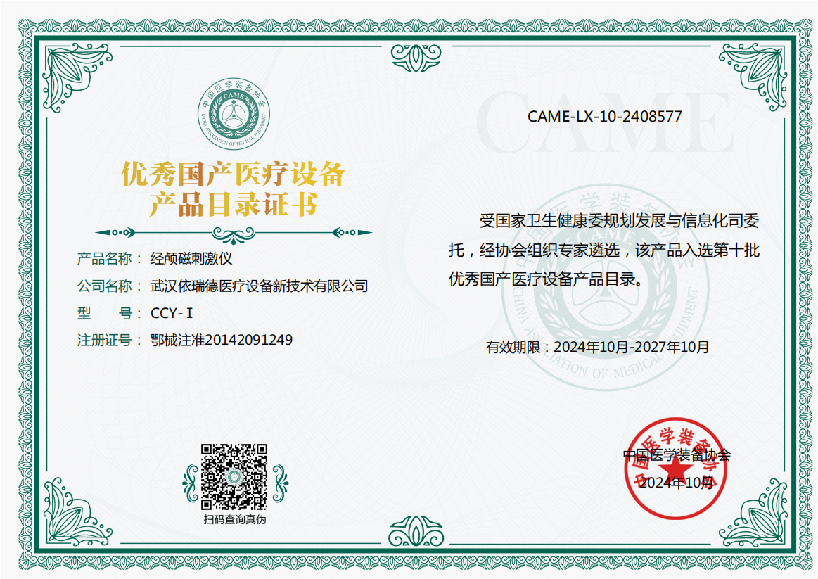 △ 依瑞德集團(tuán)旗下武漢依瑞德醫(yī)療設(shè)備新技術(shù)有限公司的經(jīng)顱磁刺激儀,成功入選目錄。