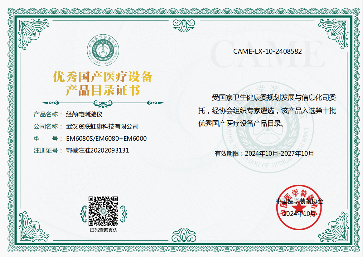 △ 依瑞德集團(tuán)旗下武漢資聯(lián)虹康科技有限公司的經(jīng)顱電刺激儀,成功入選目錄。