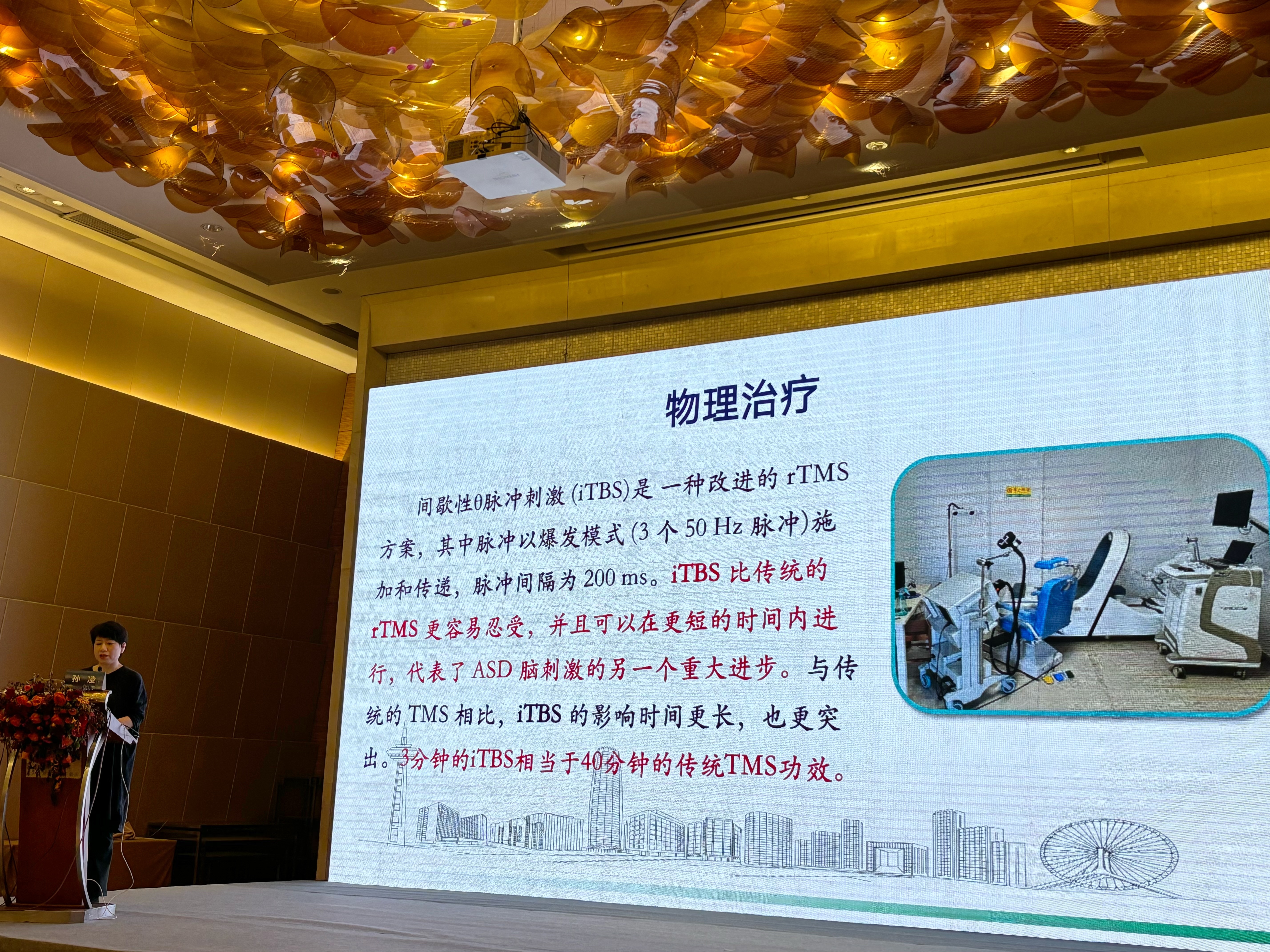 主任分享了在臨床中ASD患者的治療分享,提供了一些 ASD 的診斷及臨床管理思路,在 ASD綜合康復(fù)管理推薦使用神經(jīng)易化技術(shù)、基本康復(fù)技術(shù)、作業(yè)治療、感覺統(tǒng)合訓(xùn)練、行為分析法、言語、語言、構(gòu)音訓(xùn)練、重復(fù)性經(jīng)顱磁刺激(rTMS)。rTMS是重要的康復(fù)手段之一。