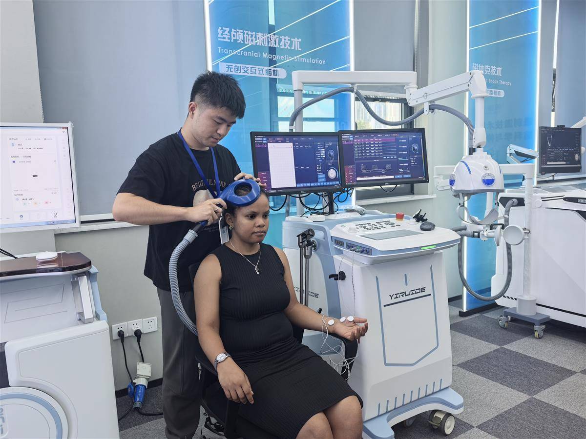 “這次的交流活動(dòng)可以讓更多國(guó)際友人了解依瑞德的實(shí)力和競(jìng)爭(zhēng)力,和大家溝通完,我信心倍增?!被顒?dòng)現(xiàn)場(chǎng),羅皓天感嘆。互動(dòng)環(huán)節(jié)中,一位斯里蘭卡留學(xué)生對(duì)經(jīng)顱磁刺激儀在自閉癥等精神疾病治療中的應(yīng)用表現(xiàn)出濃厚興趣。羅皓天詳細(xì)解釋了設(shè)備原理與使用方法,并與其深入探討了相關(guān)醫(yī)學(xué)問(wèn)題。對(duì)于此次“發(fā)現(xiàn)湖北”之行走進(jìn)依瑞德,羅皓天表示,希望未來(lái)有更多這樣的交流活動(dòng),讓世界認(rèn)識(shí)中國(guó)品牌,了解中國(guó)智造。