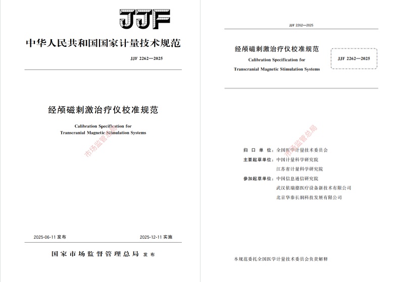 2025年6月11日,國(guó)家在經(jīng)顱磁刺激治療儀計(jì)量技術(shù)領(lǐng)域的最高權(quán)威性和強(qiáng)制性要求——《中華人民共和國(guó)國(guó)家計(jì)量技術(shù)規(guī)范-經(jīng)顱磁刺激治療儀校準(zhǔn)規(guī)范》(JJF2262-2025)(以下簡(jiǎn)稱《校準(zhǔn)規(guī)范》)由國(guó)家市場(chǎng)監(jiān)督管理總局正式發(fā)布,并將于2025年12月11日起正式實(shí)施。